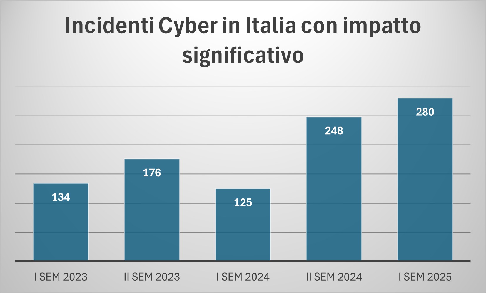 Gli incidenti cyber in Italia con impatto significativo sono in crescita come confermato dal grafico sottostante.